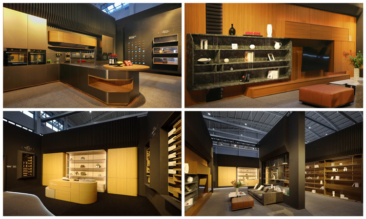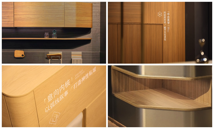 45度斜切結(jié)構(gòu)、骨骼線條、弧形元素、ABA板材工藝……多元美學(xué)融合,呈現(xiàn)全新家居意境。應(yīng)用上,ENF級(jí)環(huán)保,4.5米通頂家居,傳奇系列板材、第三代顆粒板、碳晶飾面板……為與會(huì)觀眾帶來高顏值、高個(gè)性化、高品質(zhì)的整家美學(xué)方案。